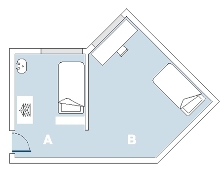 这种属于Standard Twin Room,是两个人在一个房间,卫生间是在楼层里与其他人共用的。