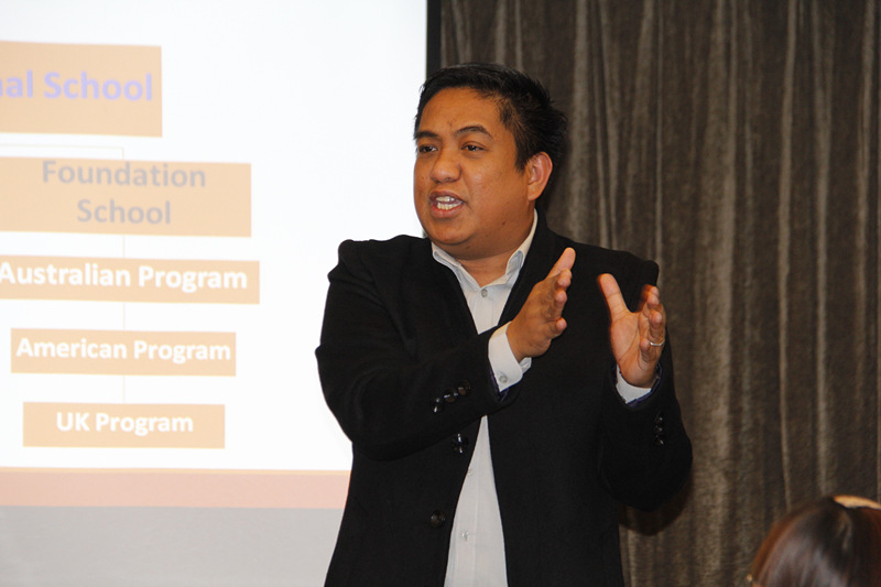 本次讲座是由澳际国际学校的学术总监Darius主讲,他向现场的学生和家长首先详细地分析了国内外教育的发展现状,澳际国际学校的预科课程对于衔接国内外教育有着重要的作用,在澳际国际学校的课程包含了澳洲预科课程、英国预科课程以及美国大一学分课程。Darius为本次讲座精心准备了PPT课件,详细地向在场的学生和家长介绍了各个课程入学及录取情况,让大家了解了国际预科这样一个通往世界名校的纽带。